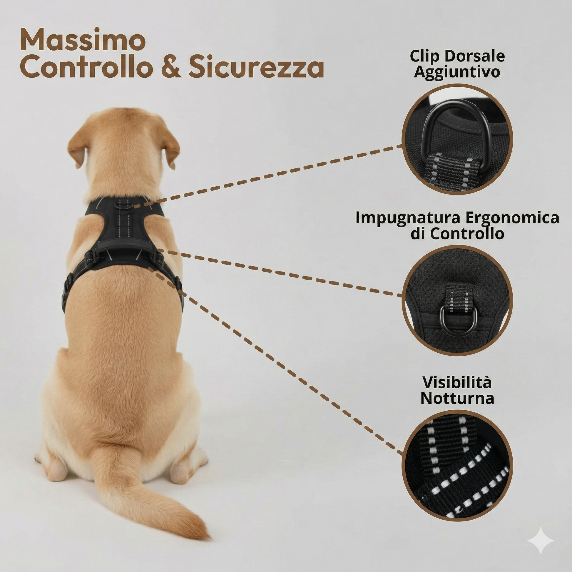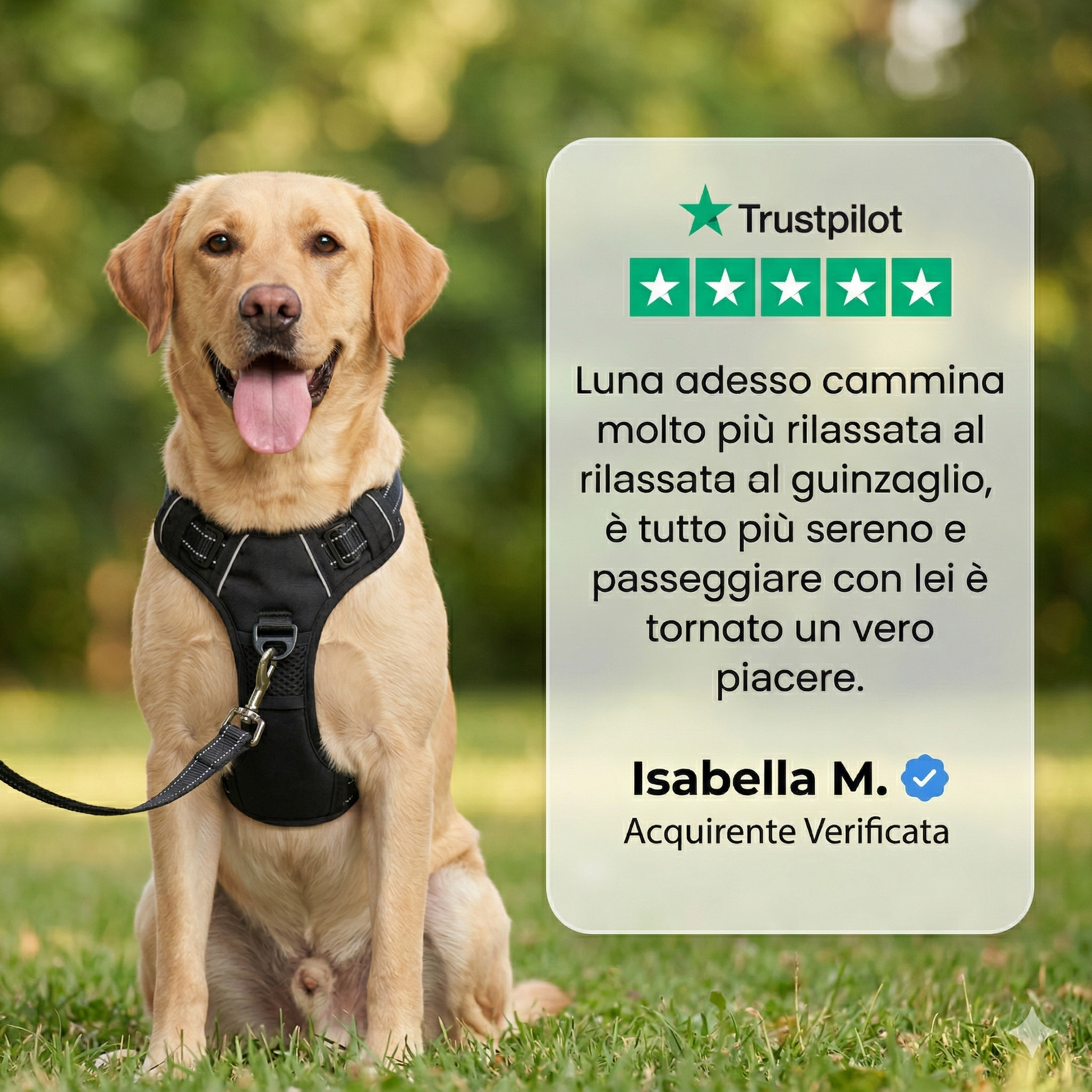 Sì. La sicurezza è una priorità. La pettorina ha una struttura robusta, regolabile e ben stabile sul corpo del cane, pensata per offrire una tenuta affidabile durante le passeggiate e nei momenti più dinamici.
